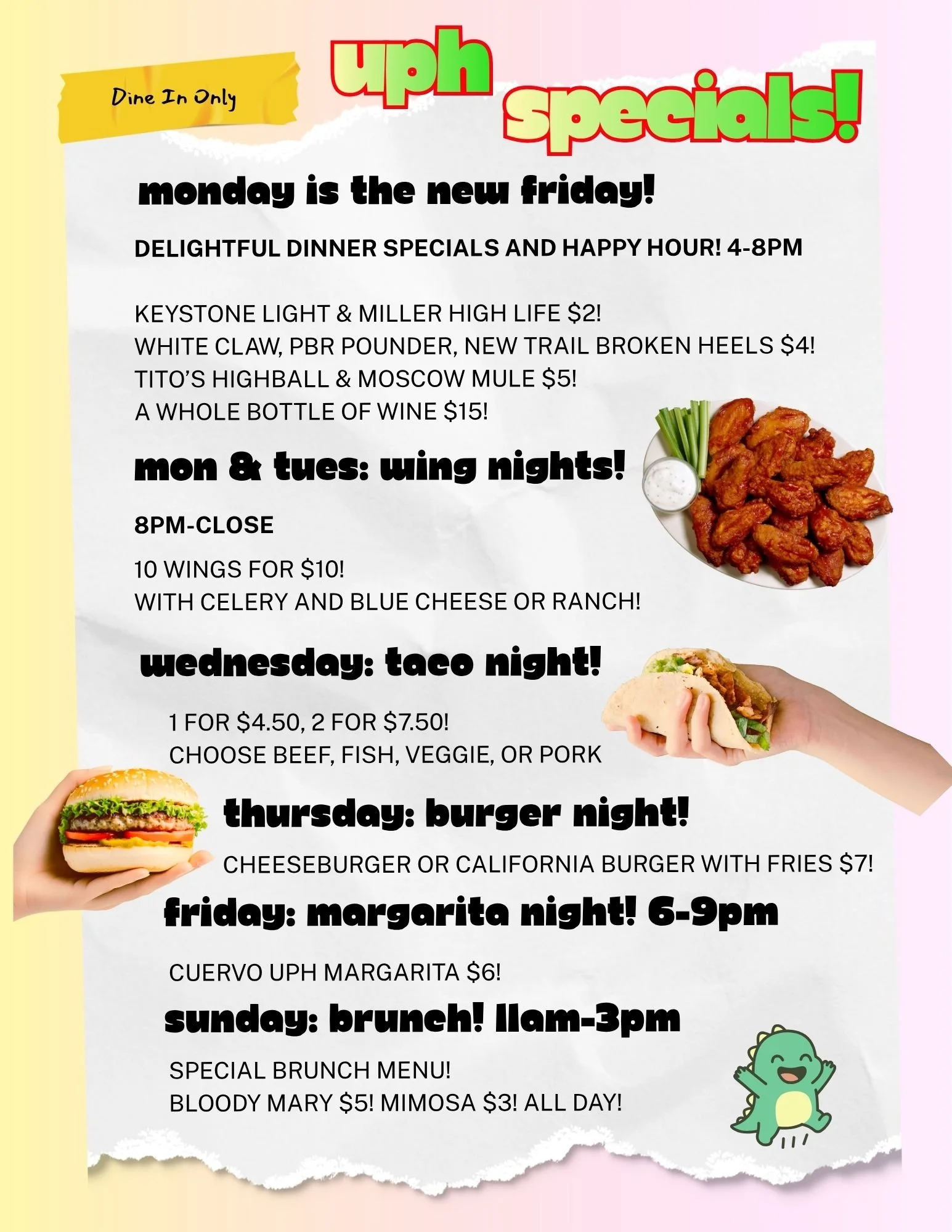 UPH features great food and over 80 kinds of beer, both craft & schwill. We're located on the East side of Jim Thorpe, PA. Rock out to the jukebox, get some grub, or just hang out with your buddies. Sorry but we don’t have a pool table, we don’t know why sometimes the internet likes to say we do!